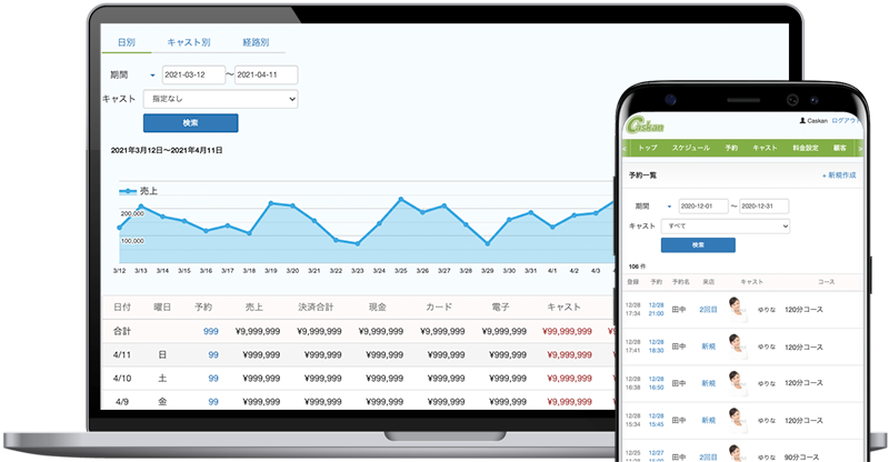 | キャスト別レポート | キャスト毎の売上を表示します |